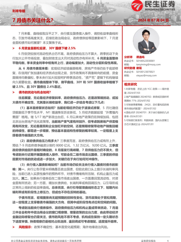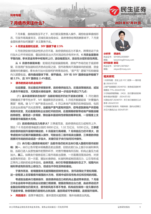 【民生证券】【20240704】利率专题:7月债市关注什么?-22页