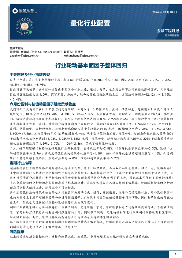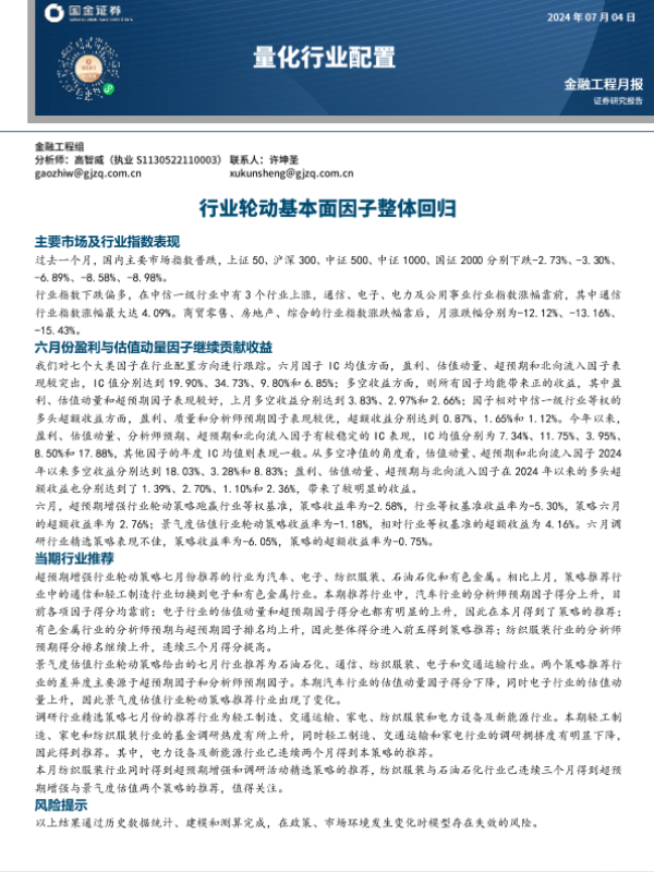 【国金证券】【20240704】量化行业配置:行业轮动基本面因子整体回归-12页