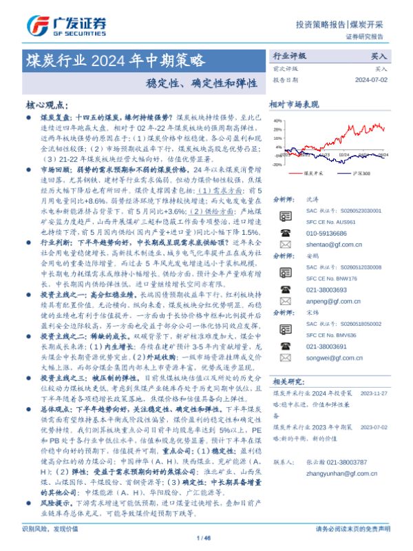 【广发证券】【20240702】煤炭行业2024年中期策略:稳定性、确定性和弹性-46页