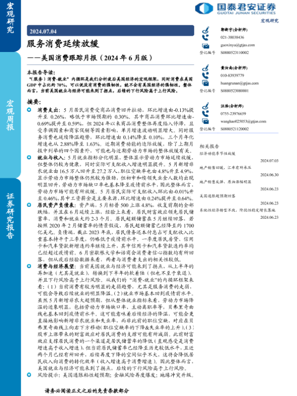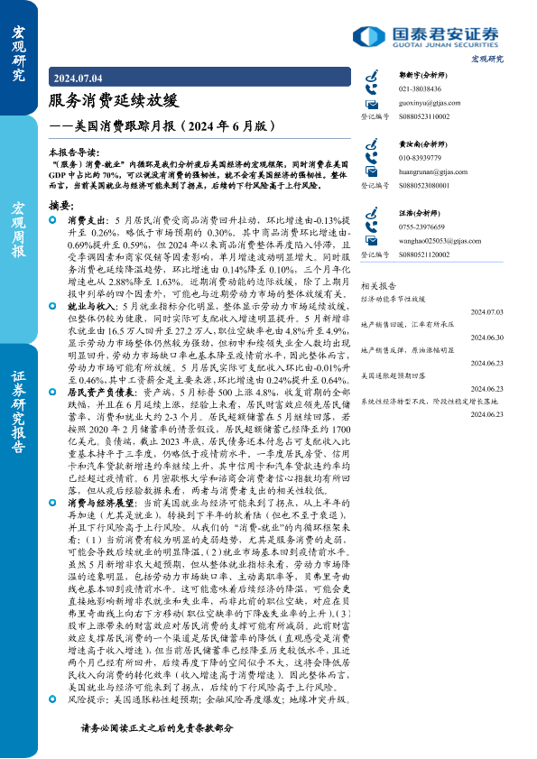 【国泰君安证券】【20240704】美国消费跟踪月报(2024年6月版):服务消费延续放缓-11页