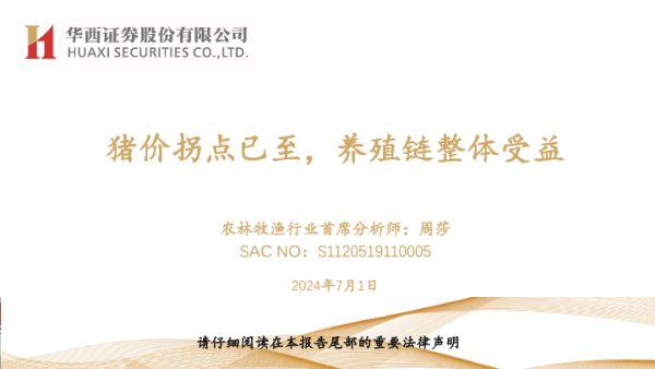 【华西证券】【20240701】农林牧渔行业:猪价拐点已至,养殖链整体受益-25页