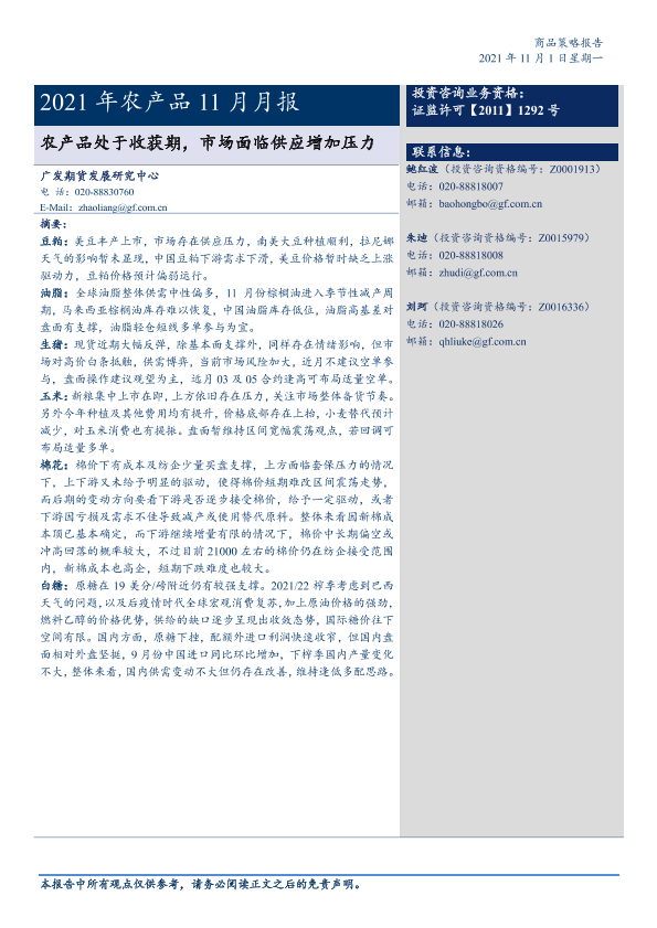 【广发期货】【20211101】2021年农产品11月月报:农产品处于收获期,市场面临供应增加压力-34页