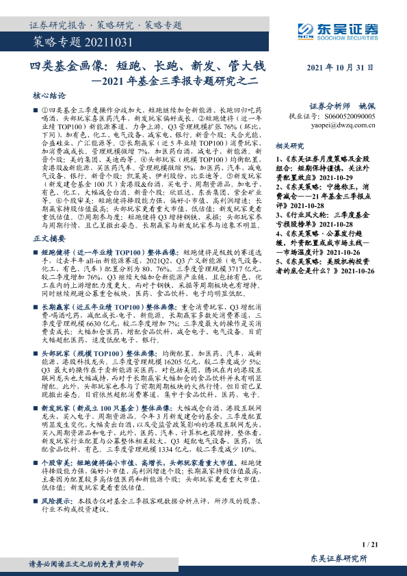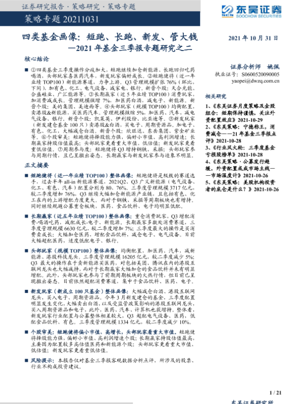 【东吴证券】【20211031】2021年基金三季报专题研究之二:四类基金画像,短跑、长跑、新发、管大钱-21页