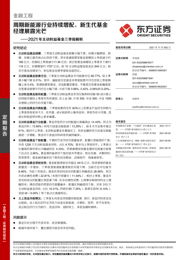 【东方证券】【20211102】2021年主动权益基金三季报解析:周期新能源行业持续增配,新生代基金经理展露光芒-20页