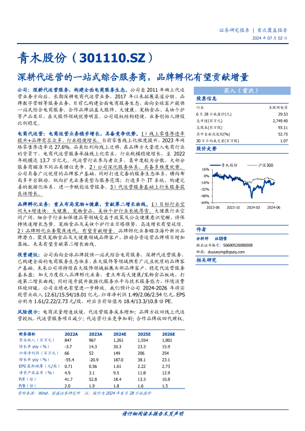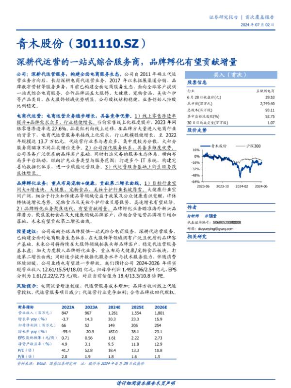 【国盛证券】【20240702】青木股份(301110)深耕代运营的一站式综合服务商,品牌孵化有望贡献增量-19页