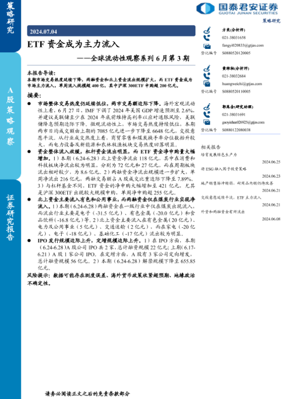 【国泰君安证券】【20240704】全球流动性观察系列6月第3期:ETF资金成为主力流入-15页
