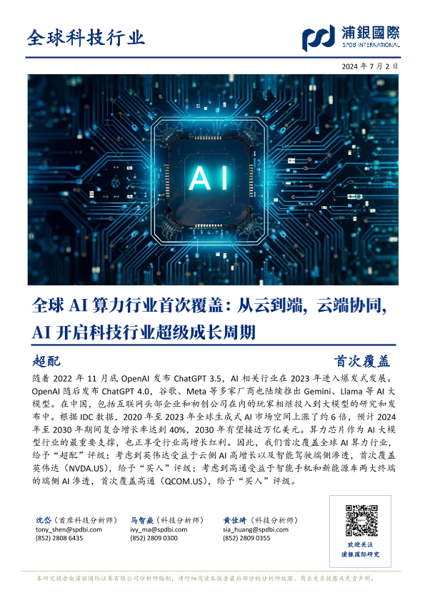 【浦银国际】【20240702】全球AI算力行业首次覆盖:从云到端,云端协同,AI开启科技行业超级成长周期-68页