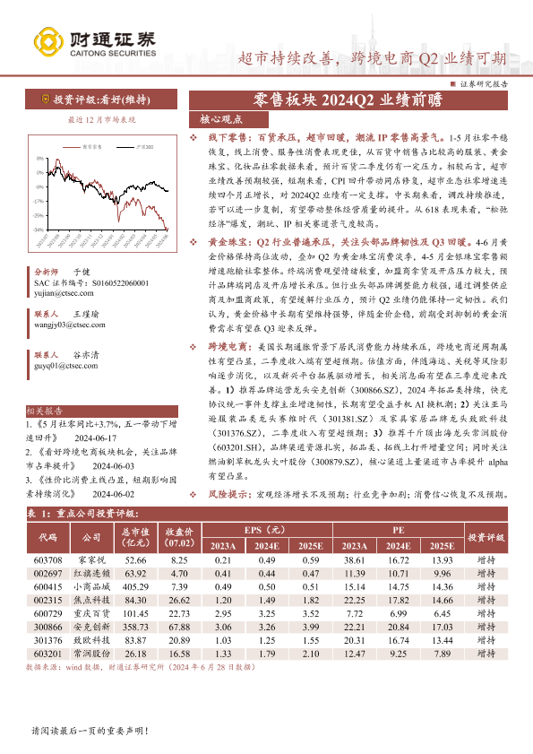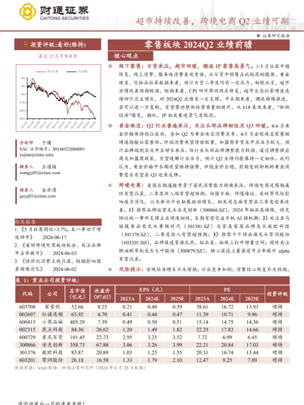【财通证券】【20240703】商贸零售行业专题报告-零售板块2024Q2业绩前瞻:超市持续改善,跨境电商Q2业绩可期-16页