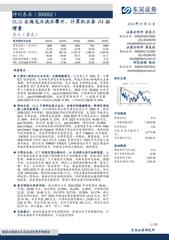 【东吴证券】【20240701】神州泰岳(300002)SLG出海龙头流水攀升,计算机业务AI拓增量-20页