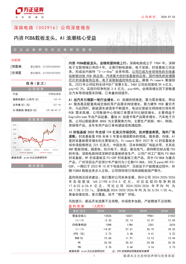 【方正证券】【20240703】深南电路(002916)公司深度报告:内资PCB&载板龙头,AI浪潮核心受益-31页