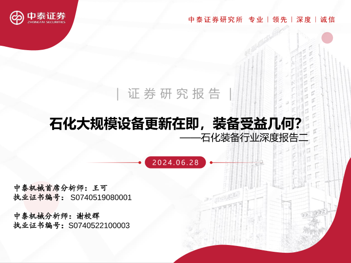 【中泰证券】【20240628】石化大规模设备更新在即,装备受益几何?——石化装备行业深度报告二-32页
