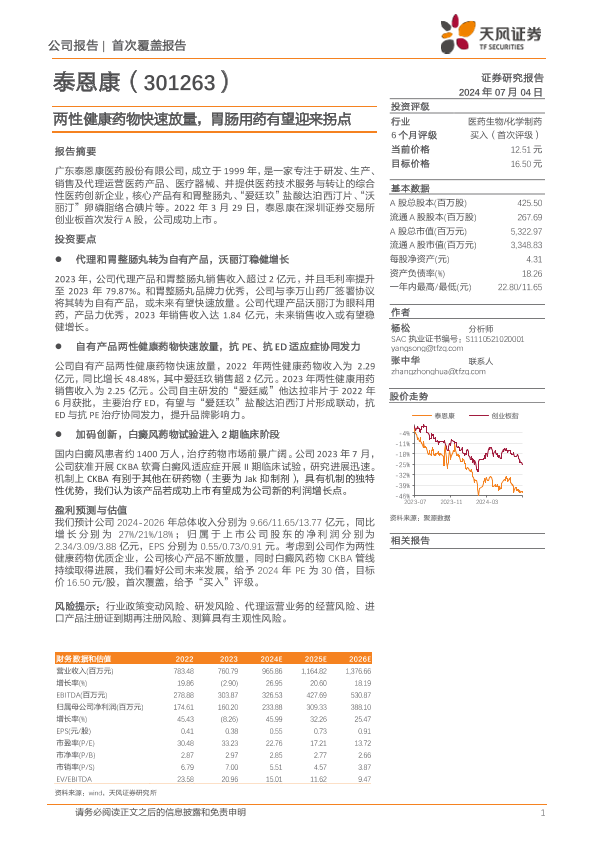 【天风证券】【20240704】泰恩康(301263)两性健康药物快速放量,胃肠用药有望迎来拐点-21页