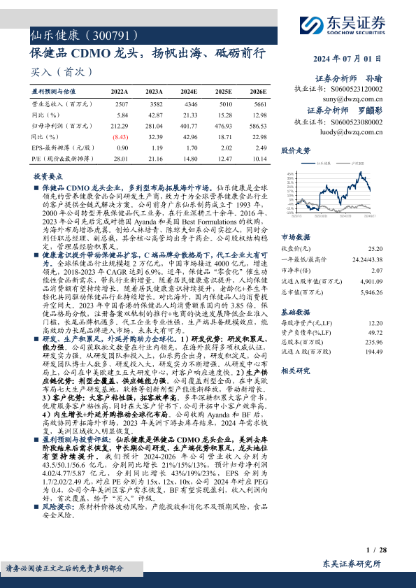 【东吴证券】【20240701】仙乐健康(300791)保健品CDMO龙头,扬帆出海、砥砺前行-28页