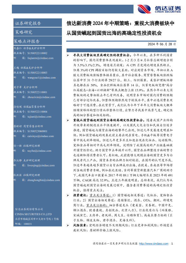 【信达证券】【20240628】信达新消费 2024年中期策略:重视大消费板块中从国货崛起到国货出海的高确定性投资机会-37页