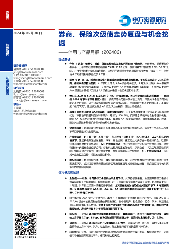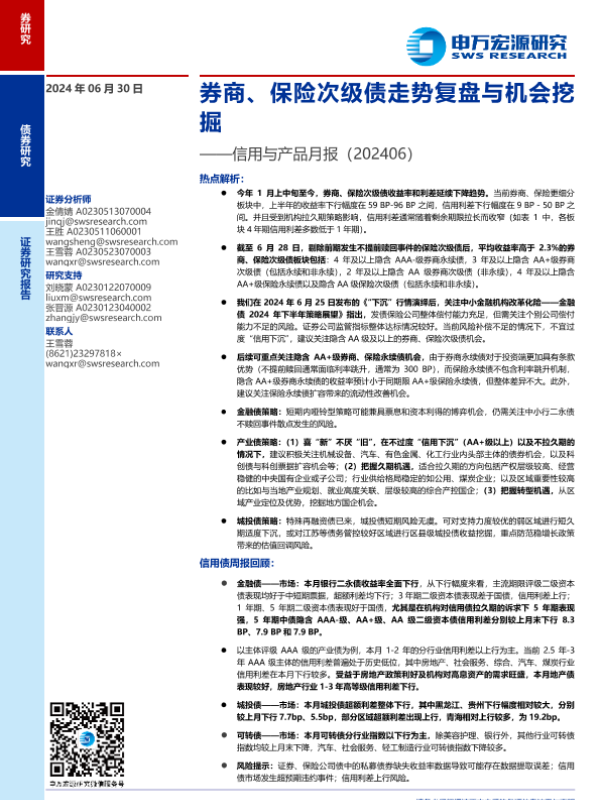 【申万宏源】【20240630】信用与产品月报:券商、保险次级债走势复盘与机会挖掘-11页
