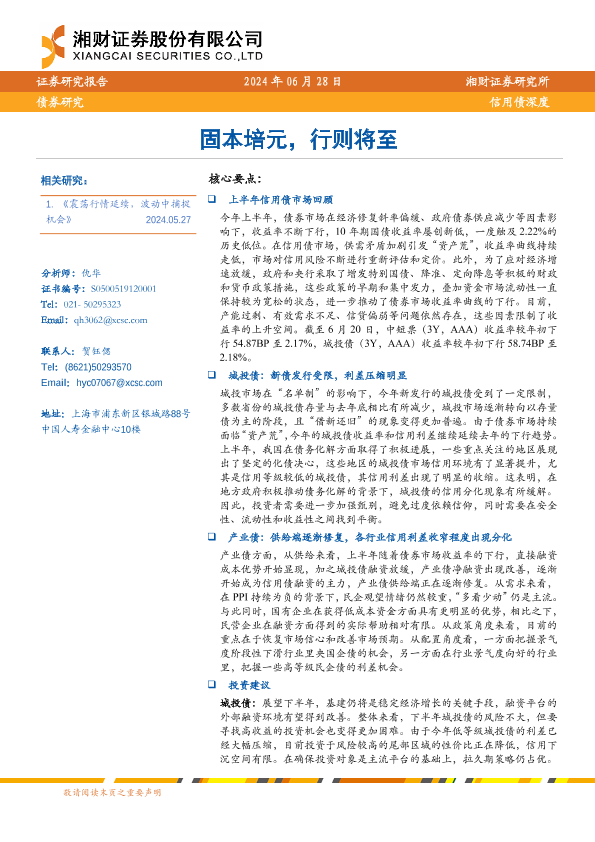 【湘财证券】【20240628】信用债深度:固本培元,行则将至-26页