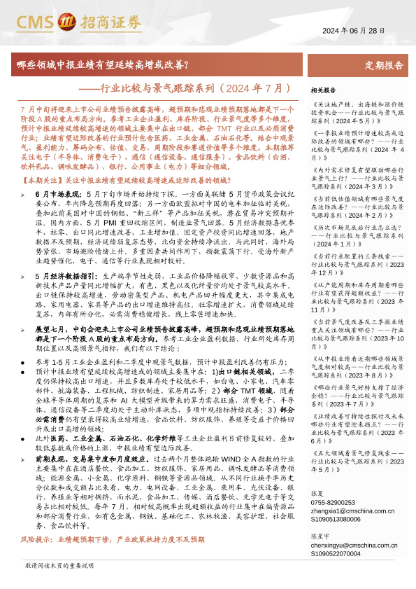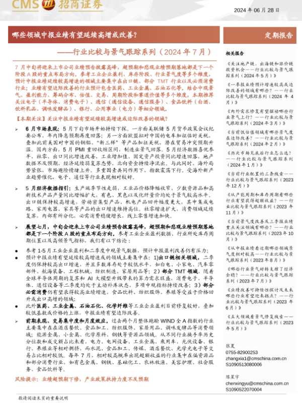 【海通证券】【20240628】行业比较与景气跟踪系列(2024年7月):哪些领域中报业绩有望延续高增或改善?-44页