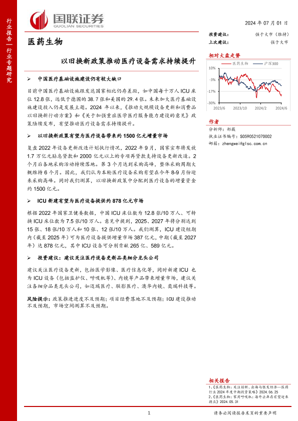 【国联证券】【20240701】医药生物行业:以旧换新政策推动医疗设备需求持续提升-13页