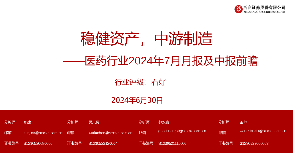 【浙商证券】【20240630】医药行业2024年7月月报及中报前瞻:稳健资产,中游制造-35页