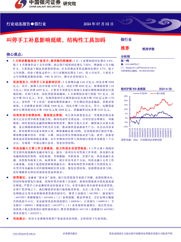 【银河证券】【20240702】银行业动态报告:叫停手工补息影响延续,结构性工具加码-17页