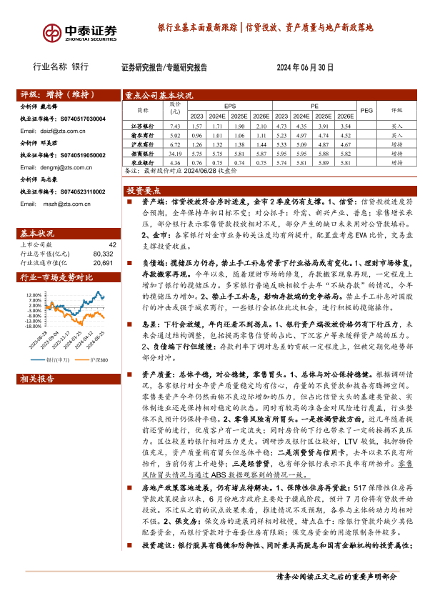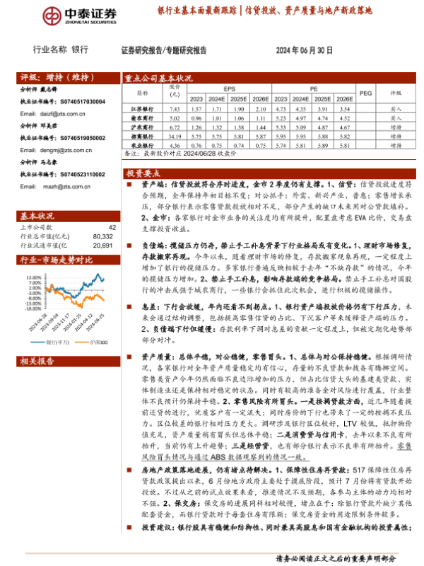 【中泰证券】【20240630】银行业基本面最新跟踪|信贷投放、资产质量与地产新政落地-20页