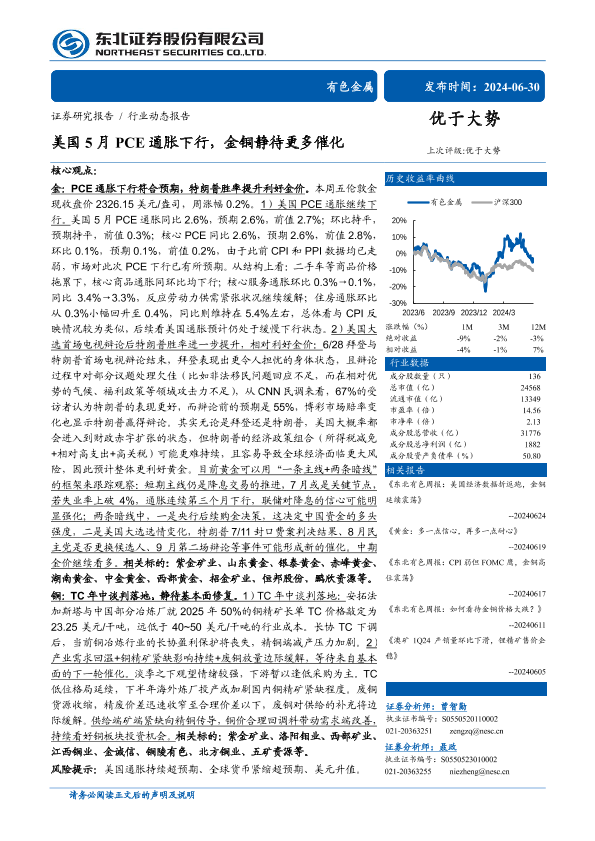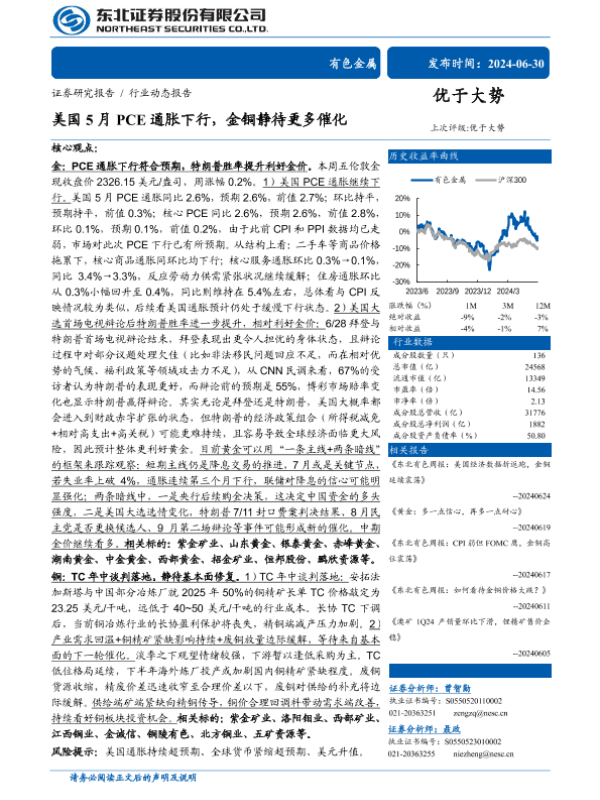 【东北证券】【20240630】美国5月PCE通胀下行,金铜静待更多催化-24页