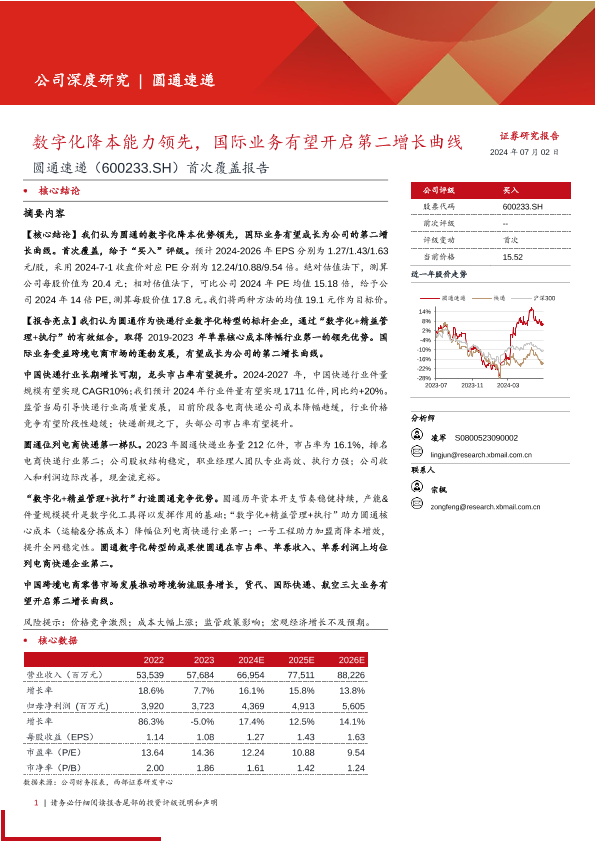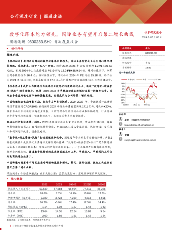 【西部证券】【20240702】圆通速递(600233)首次覆盖报告:数字化降本能力领先,国际业务有望开启第二增长曲线-37页
