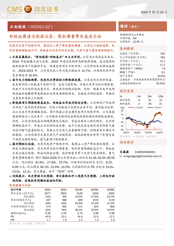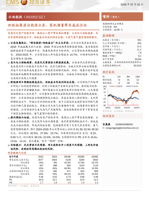 【海通证券】【20240701】云南能投(002053)积极拓展清洁能源业务,装机增量带来高成长性-21页