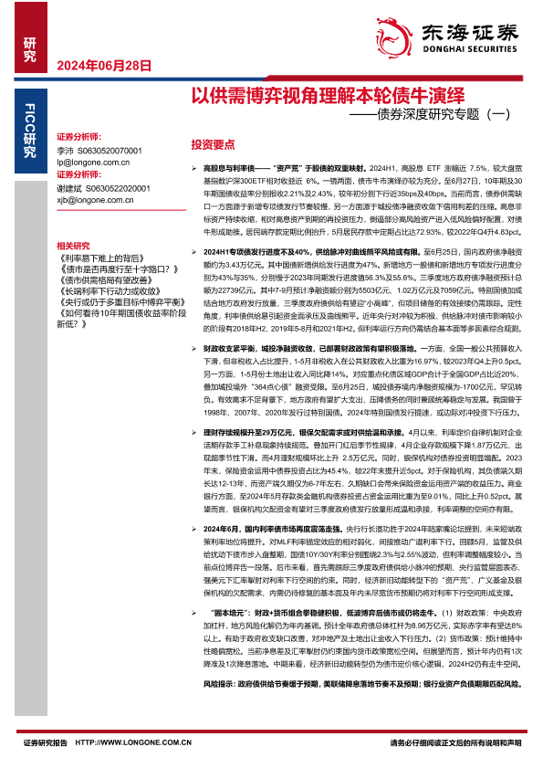 【东海证券】【20240628】以供需博弈视角理解本轮债牛演绎-25页