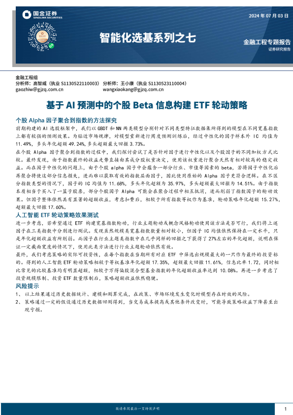 【国金证券】【20240703】智能化选基系列之七:基于AI预测中的个股Beta信息构建ETF轮动策略-18页