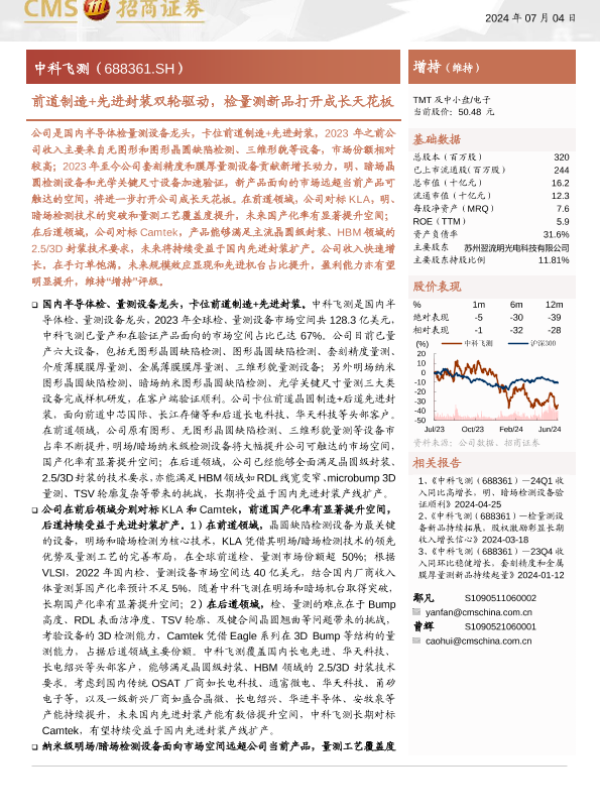 【海通证券】【20240704】中科飞测(688361)前道制造+先进封装双轮驱动,检量测新品打开成长天花板-27页