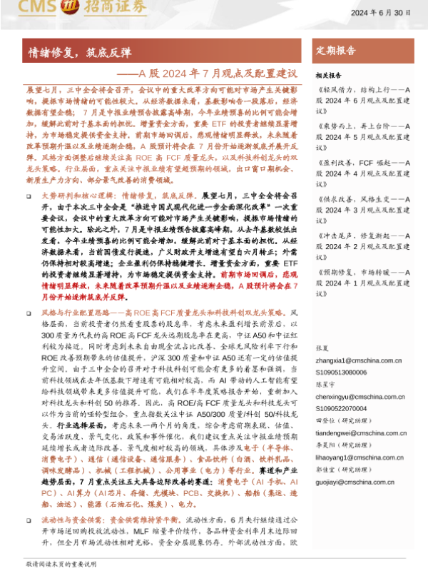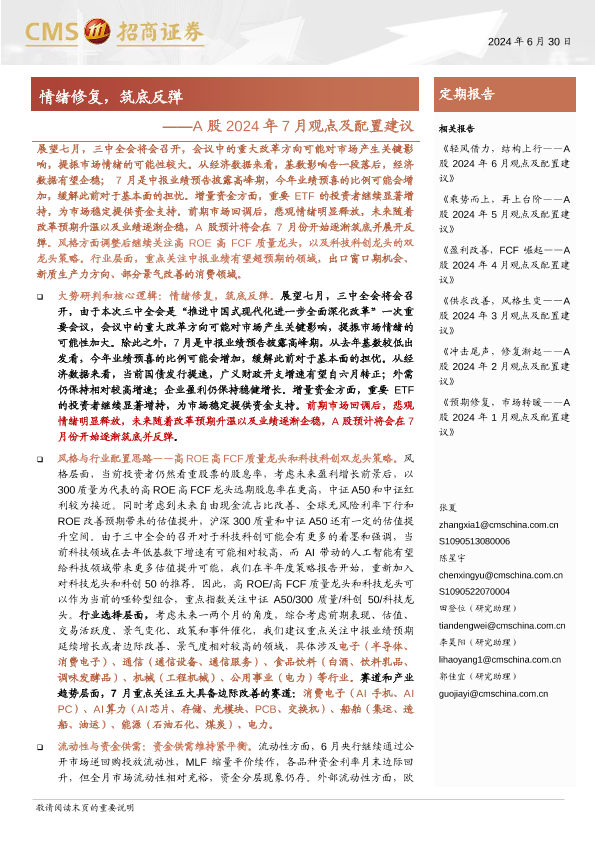 【海通证券】【20240630】A股2024年7月观点及配置建议-82页
