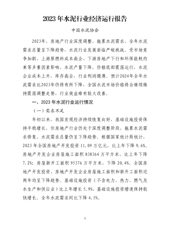 【中国水泥协会】【20230101】2023年水泥行业经济运行报告-8页