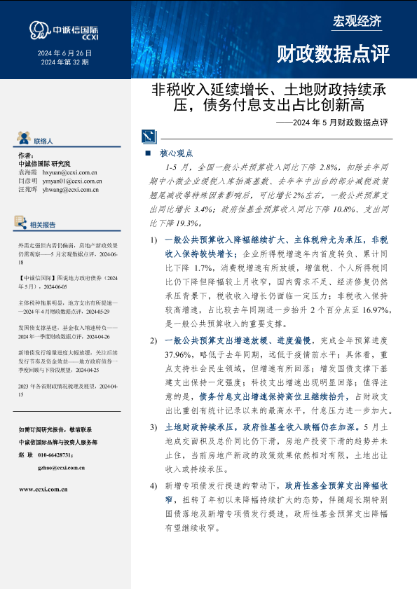【中诚信国际】【20240626】非税收入延续增长、土地财政持续承压,债务付息支出占比创新高-10页