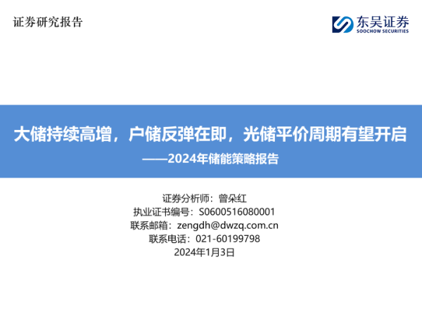 【东吴证券】【20240103】2024年储能行业策略报告:大储持续高增,户储反弹在即,光储平价周期有望开启-61页