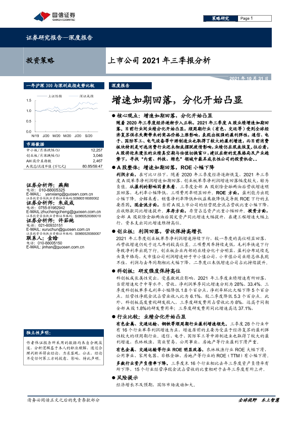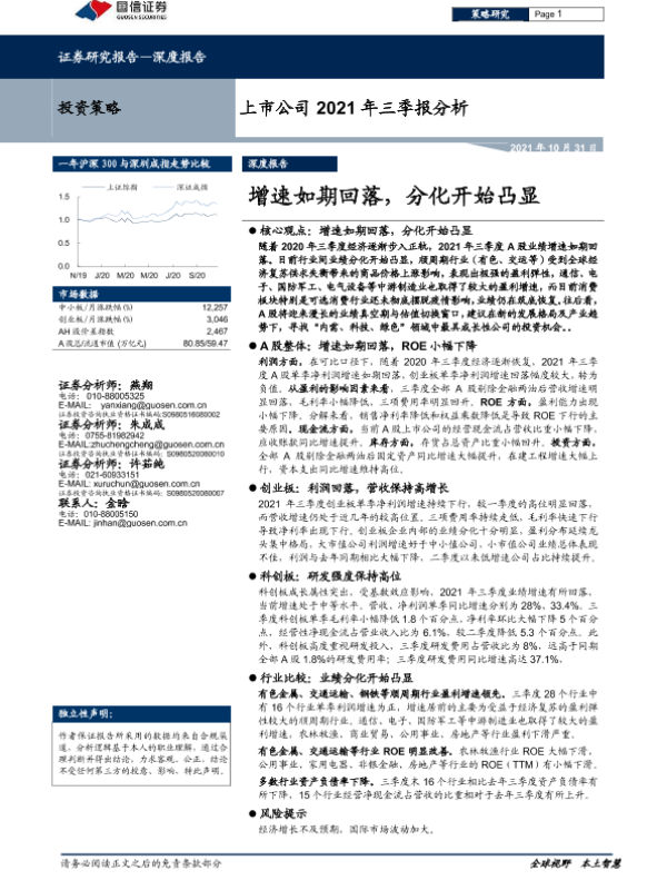 【国信证券】【20211031】上市公司2021年三季报分析:增速如期回落,分化开始凸显-29页