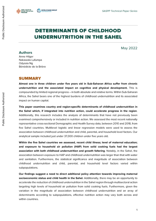 【世界银行集团】【2021】世界银行-萨赫勒地区儿童营养不良的决定因素-70页
