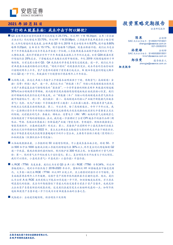 【安信证券】【20211031】下行的A股基本面:成本冲击下何以解忧?-30页