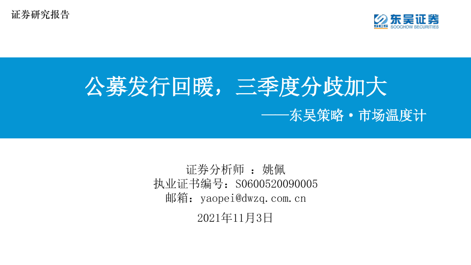 【东吴证券】【20211103】东吴策略·市场温度计:公募发行回暖,三季度分歧加大-26页