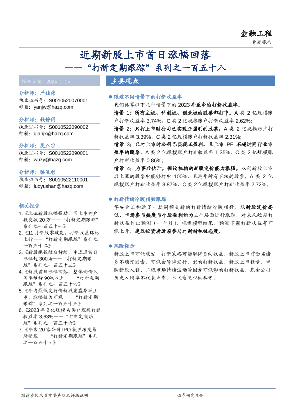 【华安证券】【20240115】“打新定期跟踪”系列之一百五十八:近期新股上市首日涨幅回落-19页