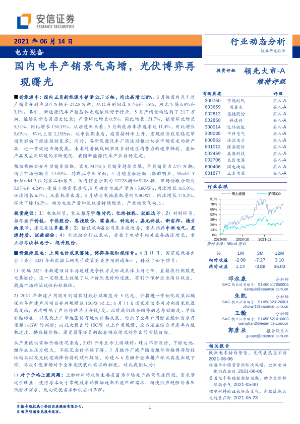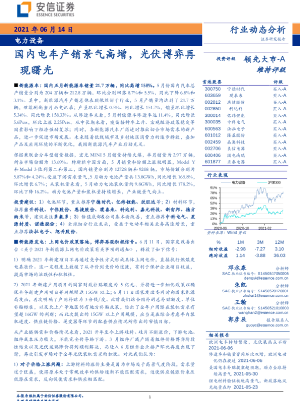 【安信证券】【20210614】电力设备行业:国内电车产销景气高增,光伏博弈再现曙光-28页