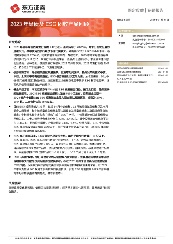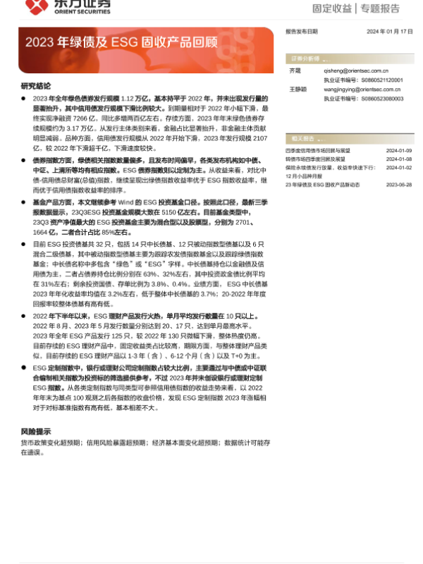 【东方证券】【20240117】2023年绿债及ESG固收产品回顾-24页