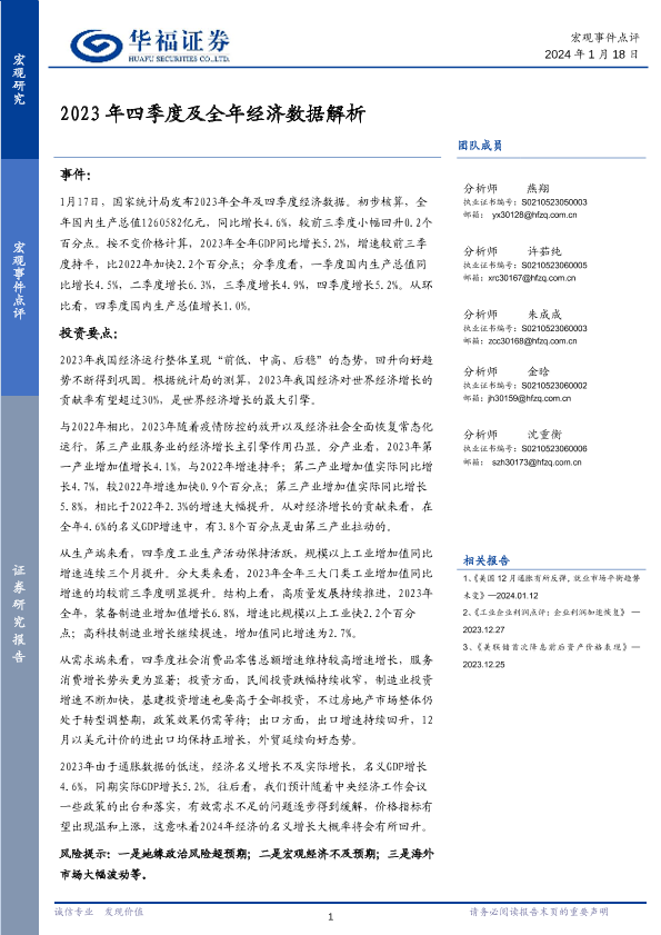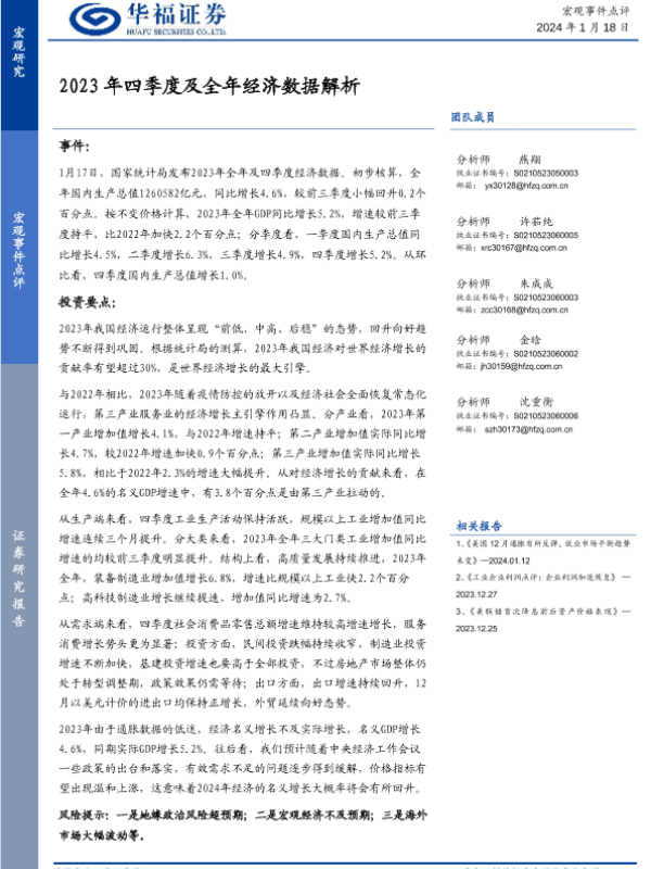 【华福证券】【20240118】2023年四季度及全年经济数据解析-14页
