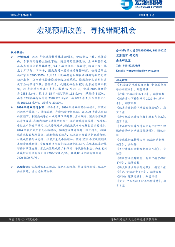 供需分析 宏观经济 期货期权 风险提示 烧碱市场