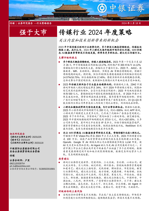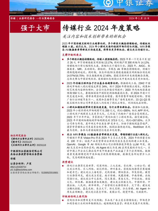【中银证券】【20240118】传媒行业2024年度策略:关注内容和技术创新带来的新机会-51页