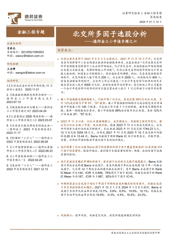 北交所 多因子选股 小市值 证券分析 金融工程