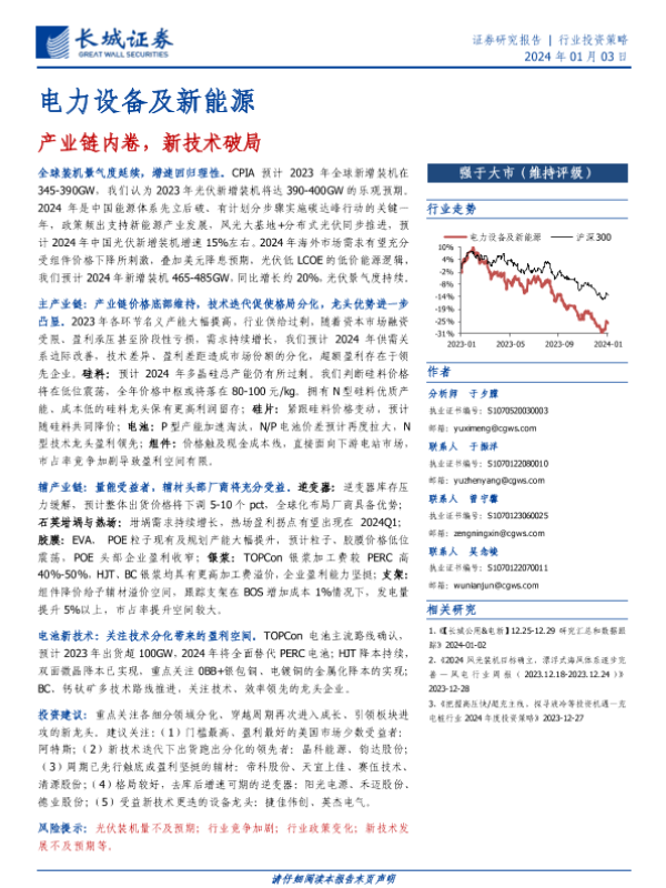 【长城证券】【20240103】电力设备及新能源行业:产业链内卷,新技术破局-36页