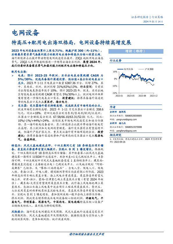 【国盛证券】【20240114】电网设备行业策略:特高压+配用电出海双格局,电网设备持续高增发展-31页