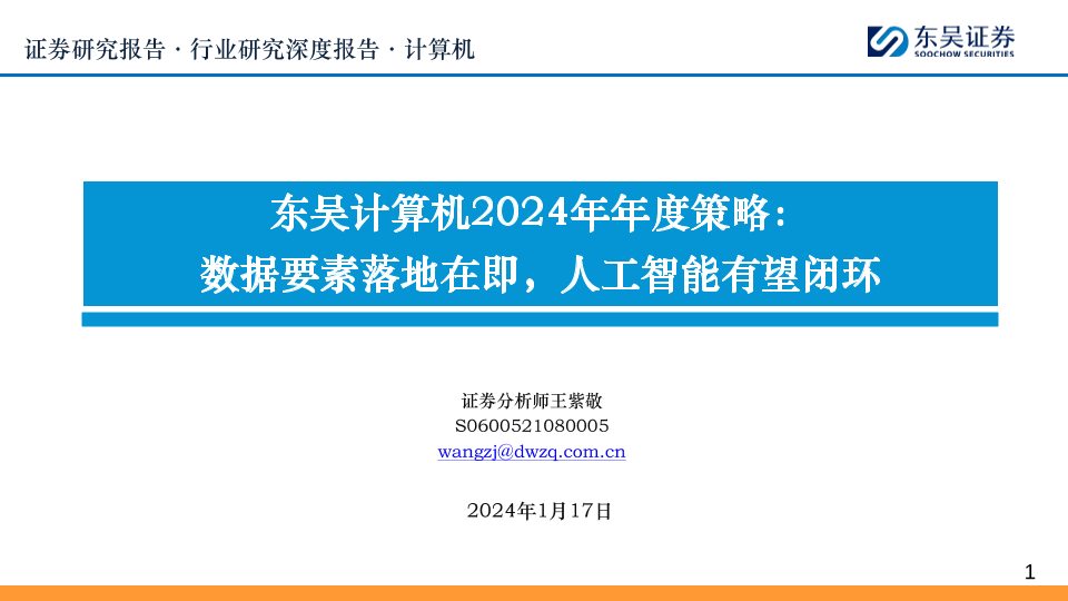 【东吴证券】【20240117】东吴计算机2024年年度策略:数据要素落地在即,人工智能有望闭环-84页