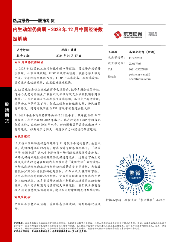 【东证期货】【20240117】股指期货热点报告:2023年12月中国经济数据解读-内生动能仍偏弱-10页